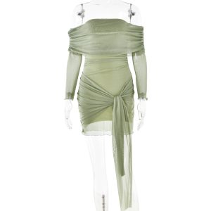 New sexy fashionable tube top dress long sleeve pleated hip skirt Fabric name: mesh+milk silk Pattern: solid color Technique: Collage/Splicing Main fabric composition: polyester (polyester fiber)