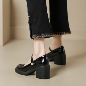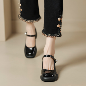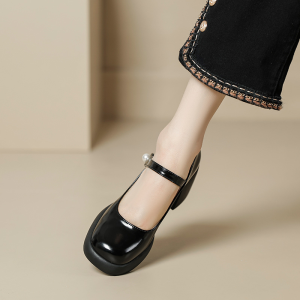 Retro Thick-soled Small Leather Shoes Women’s 2025 Spring and Autumn New British Style Pearl Word Buckle Strap Mary Jane Single Shoes Women