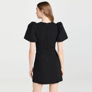 New Black Short Skirt Sexy O Neck Short Sleeve Fashion Women’s Bow Hollow Slim Bandage dress