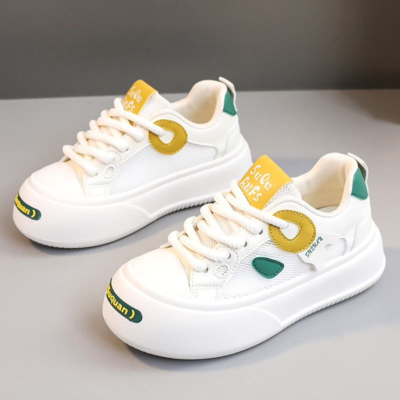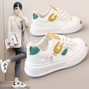 New wear-resistant color-blocked leather women’s shoes spring and summer casual breathable sneakers thick soles increase fashion Korean