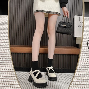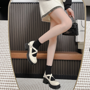 Sweet Cool Cross Buckle Mary Jane Women’s Shoes JK Small Leather Shoes 2025 New Platform Round Toe Block Heel Versatile Single Shoes