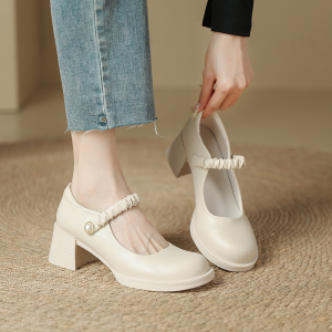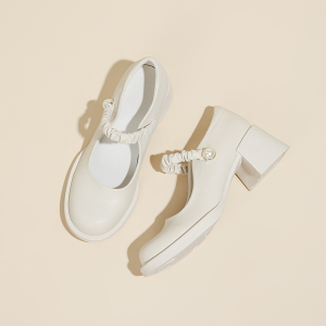 White Mary Jane High Heels Women’s New Pumps with Fairy Style Block Heel Pumps Small Leather Shoes